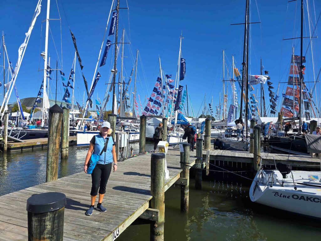 Efter Baltimore tog vi oss tillbaka till Annapolis för nu började det närma sig Annapolis Sailboat Show. Tyvärr åkte vi på dunderförkylnigar bägge två, Covid Nouvelle månne? Den 9 oktober närmade sig vilket var öppningsdagen för mässan. Fortfarande snoriga och hostiga vandrade vi runt på en mycket trevlig och stor flytande segelbåtsmässa. Vi köpte tampar för åtskilliga tusenlappar till vårt nya Parasailor segel och lite annat smått och gott.