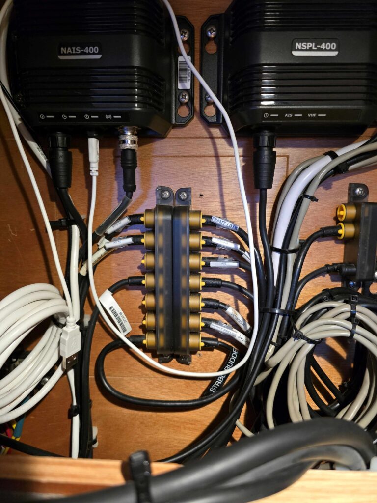 EFter mässan blev det några dagar med båtmek. Nya hydrogeneratorn skulle monteras, ny inverter (220 Volt) och lite annat skulle hinnas med. Omprogrammering av VHFens MMSI nummer visade sig omöjligt att få gjort lokalt så vi fick köpa en ny. Amazon har allt, levererar snabbt och är en reservdelstörstande långseglares bästa vän.