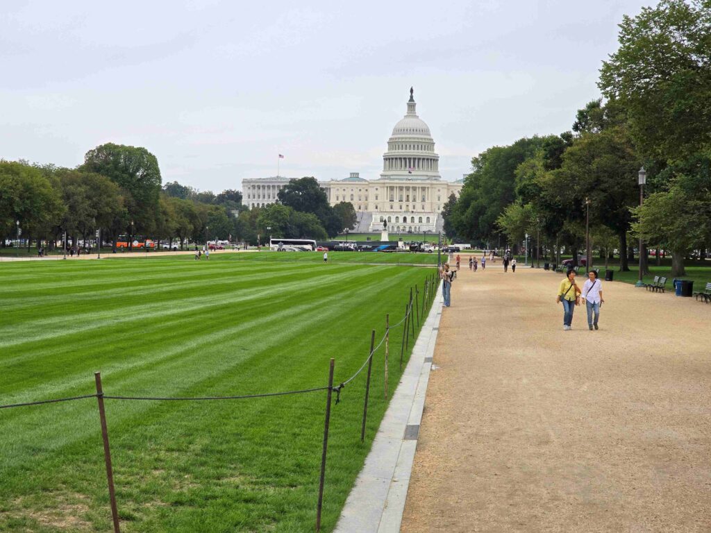 Efter lite rymd och flyg promenerade vi ner mot Washington Monument och kom så småningom fram till Vita huset. Ingen Trump syntes till och tur var väl det för Pernilla hade nog haft svårt att hålla inne med sina åsikter. Efter några timmars turistande tyckte vi det räckte och tog tåget tillbaks. Det gick betydligt snabbare än buss. En rejäl promenad tillbaks till båten gjorde att vi landade på ungefär 22 000 steg den dan. Välbehövligt då det andra dagar knappt blir 1000 steg.
