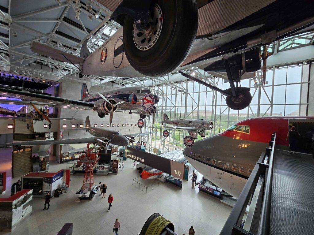 Baltimore var inte mycket att hänga i julgranen. Det blev en sushi restaurant första kvällen. Vädret och ankringen var toppen med både båttillbehöraffär och mataffär 100 m från dingy docken. Alltså en speciell brygga för dingen. Men pga av ett miljöprojekt där man muddrade i närheten låg det hela tiden en viss odör av lera och avfallstipp över hela ankringshamnen. Intensiteten varierade med hur vinden låg på. Pernillas vars nos är mycket känslig, tyckte att här kan vi inte stanna. Baltimore ligger bara en timme från Washington DC så vi tog bussen dit och var turister för en dag. Vi tittade på Smithsonian National Air and Space Museum som är riktigt sevärt. Gratis är det dessutom.