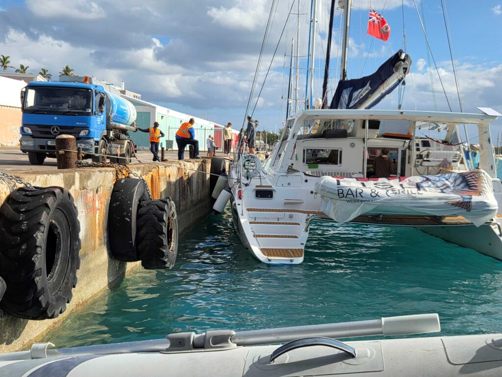Innan vi gav oss iväg var det skattefri tankning. För detta ordnade de Salty Dawg:are som varit på Bermuda tidigare en specialbeställd tankbil som kom till en kaj. Sen skulle vi båtar komma en efter en i ett förutbestämt schema och tanke. Det skulle gå smidigt och tidseffektivt och det gjorde det också.